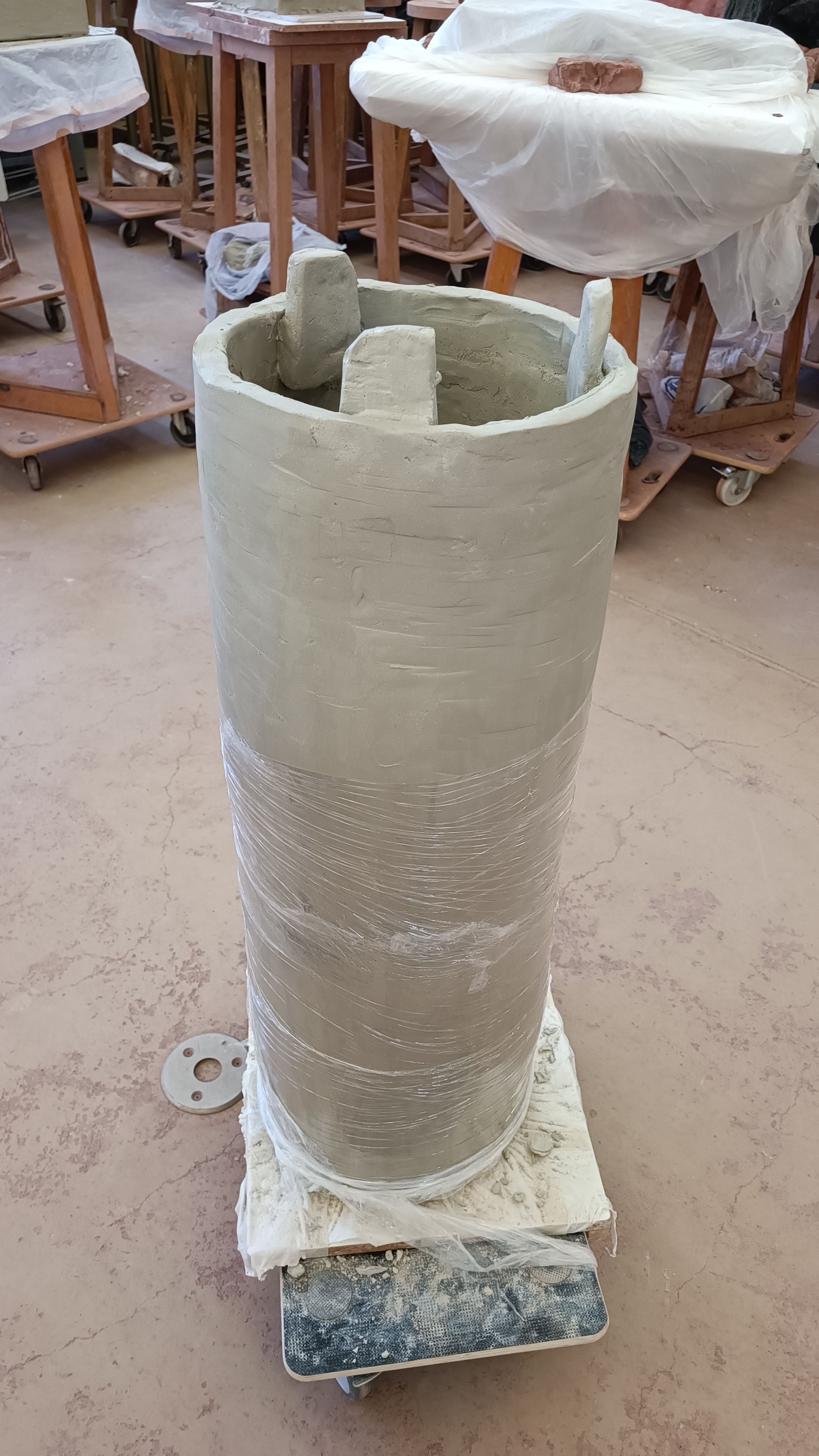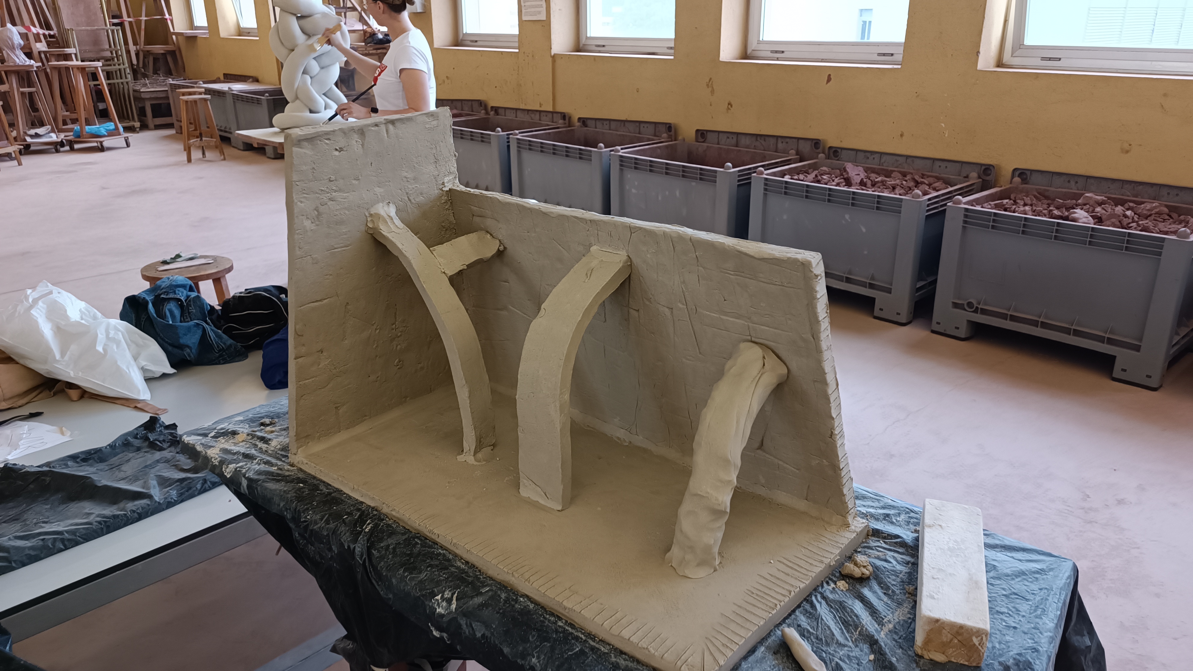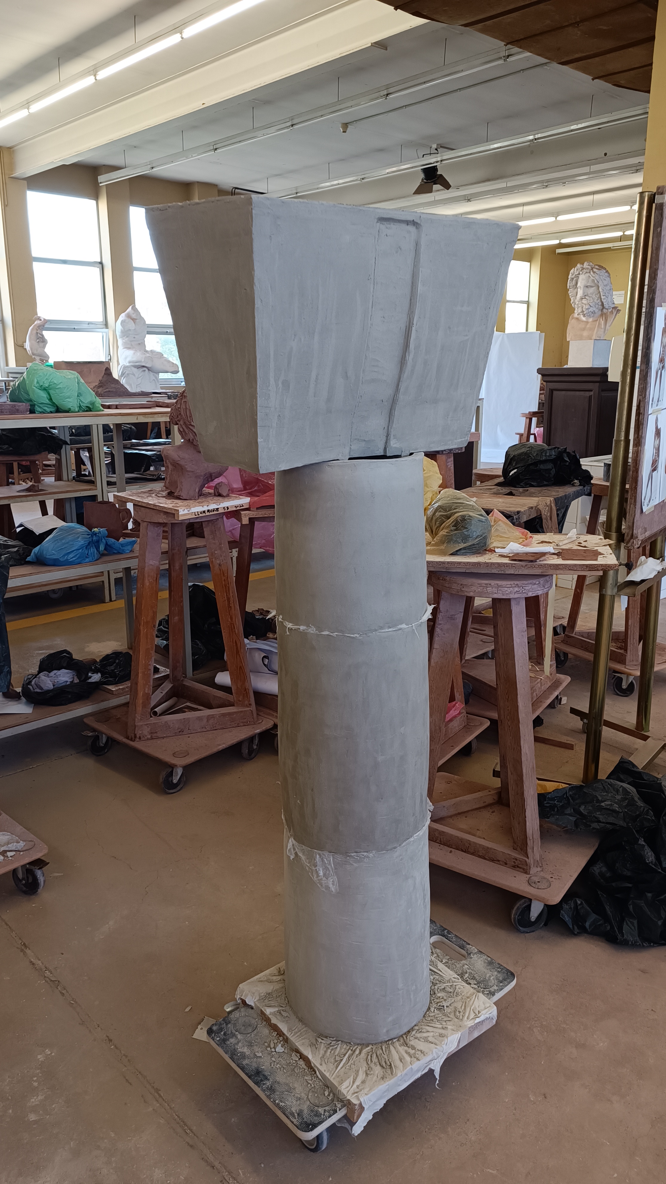 A través de la tècnica del modelatge constructiu he replicat  un pilar d’autopista, interessat per les seves formes megalítiques i mesopotàmiques que presenten ames,  Atles era el nom que rebia el tità condemnat a suportar el pes del món a la seva esquena i sento que, d’alguna manera, és ara la tecnologia, la globalització i el consum el que aguanta el món. Aquestes pilastres sostenen en el món com ho feia Atles.